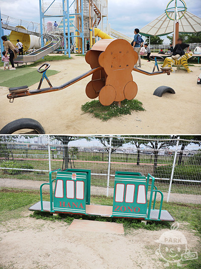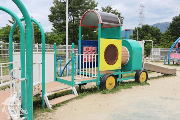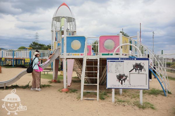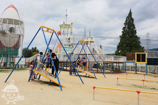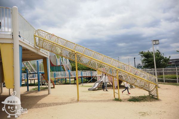 • ラグビーのまち東大阪市ならではのラグビーをあしらった遊具や大型遊具でいっぱい遊べるよ!巨大遊具からのローラーすべり台やネット遊具、ターザンロープなど、元気キッズ大満足の公園です。