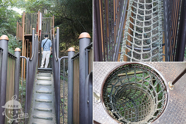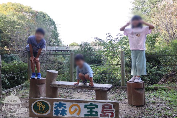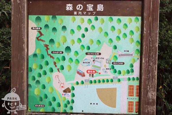 - 総面積49万平米もの広さがある「むろいけの森」の北側に、大きなアスレチックやジャンボすべり台などがある「宝島の森」あります。アスレチックは山の斜面を利用しており、けっこうのぼるので動きやすい服装で行きましょう。