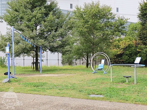 - 芝生が続き、とても広々とした広場が魅力的です。大型複合遊具の楽しい仕掛けで、子どもたちがのびのびと遊ぶことができますよ。